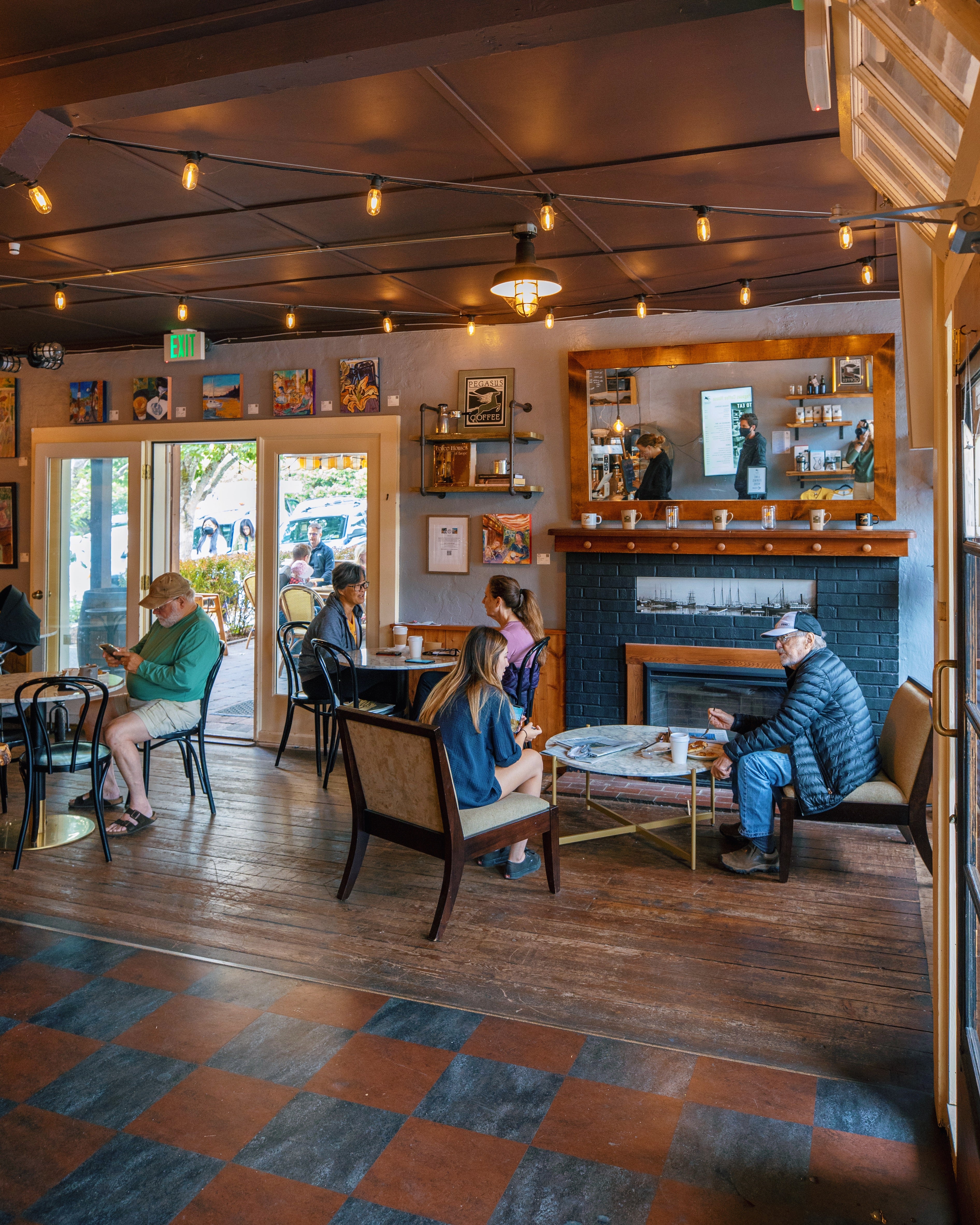 Inspired by and designed in the classic European Coffee House tradition, our Bainbridge location has long been a friendly - if somewhat bohemian - place to gather for outstanding coffee, lively discussion and the free exchange of ideas. A haven for artists, Pegasus' walls have also long been a gallery for local art, and its front window a stage for traveling musicians and poets from across the PNW.